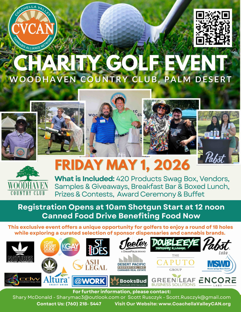 When 11 Dec 2020 7:00 AM - 3:00 PM Location Woodhaven Country Club, Palm Desert, CA This is going to be another great fun-filled networking day in an intimate setting with so many business owners and executives of the legal cannabis industry and it's ancillary businesses! We are so thankful for the response we received last year and can't wait for December 11th 2020!!! Some of you have been asking...